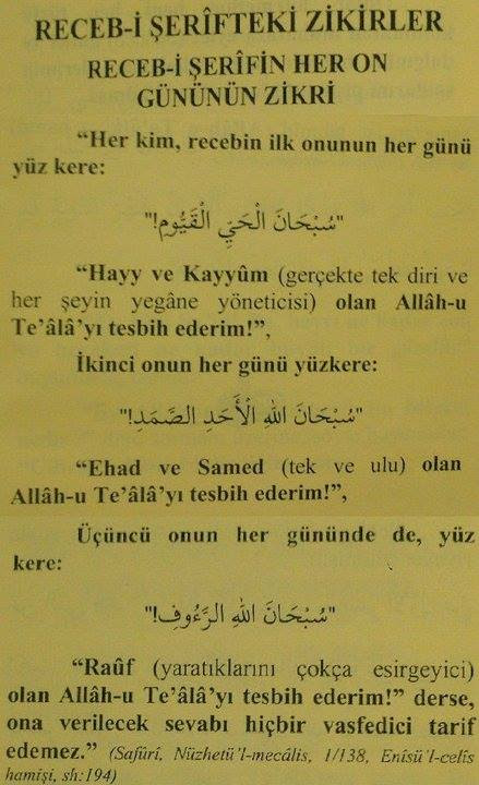 Receb-i Şerifin Her On Gününün Zikri