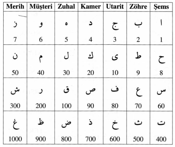 Gezegenlere göre harfler.