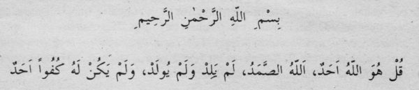 “Deki: O, Allah’tır, bir tektir. O Allah’tır, Samed’dir (zeval bulunmayan bir bakîdir, dâimdir, herkesin ve her şeyin doğrudan doğruya muhtaç olduğu ve kasdettiği yegâne varlıktır, ulular ulusudur.) Doğurmamıştır, do-ğurulmamıştır O. Hiçbir şey O’nun dengi ve benzeri değildir. ”(47) Ihlas, 1-4.