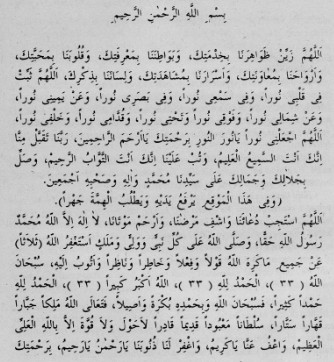 (Allahumme zeyyin zevâhirenâ bi hizmetike ve bevâtınena bi ma’rifeti-ke ve kulûbena bi mahabbetike ve ervâhena bi muâvenetike ve esrârena bi müşâhedetike ve lisânena bi zikrike.