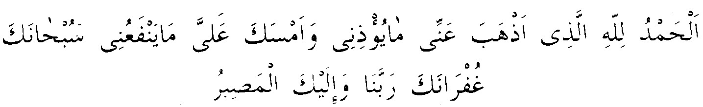 (Elhamdülillâhillezî ezhebe annîmâ yü’zinî ve emseke aleyye ma yenfe ‘unî. Sübhaneke ğufrâneke Rabbenâ ve ileykel-masîr.)